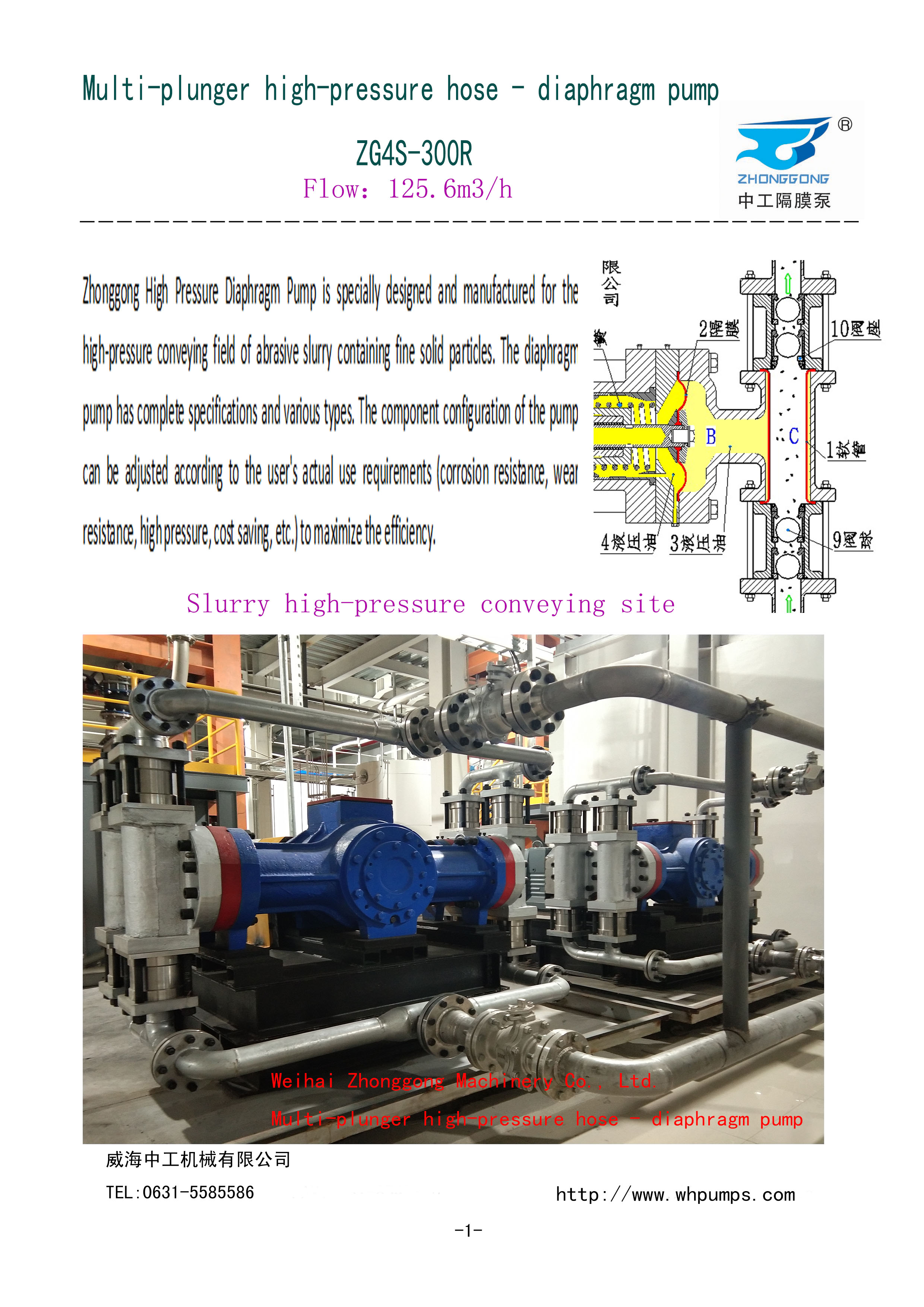 威海中工机械有限公司是一家具有自主知识产权涉足特种浆液高压输送领域的高科技股份制企业,集 科研开发、技术转让、生产销售为一体。解决以往隔膜泵的所有缺陷,以其独特的技术领先于世界。